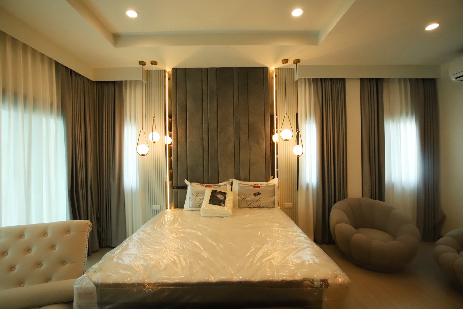 Greywood Contemporary เป็นโปรเจกต์ ออกแบบตกแต่งภายในบ้านพักอาศัยชั้นเดียว ที่พัฒนาขึ้นเพื่อรองรับการใช้ชีวิตของครอบครัว โดยภายในประกอบด้วย 5 ห้องนอน 1 ห้องโถง และพื้นที่ครัวที่เชื่อมต่อกับ Pantry Zone เพื่อให้การใช้งานภายในบ้านมีความต่อเนื่อง สะดวก และตอบโจทย์ชีวิตประจำวัน