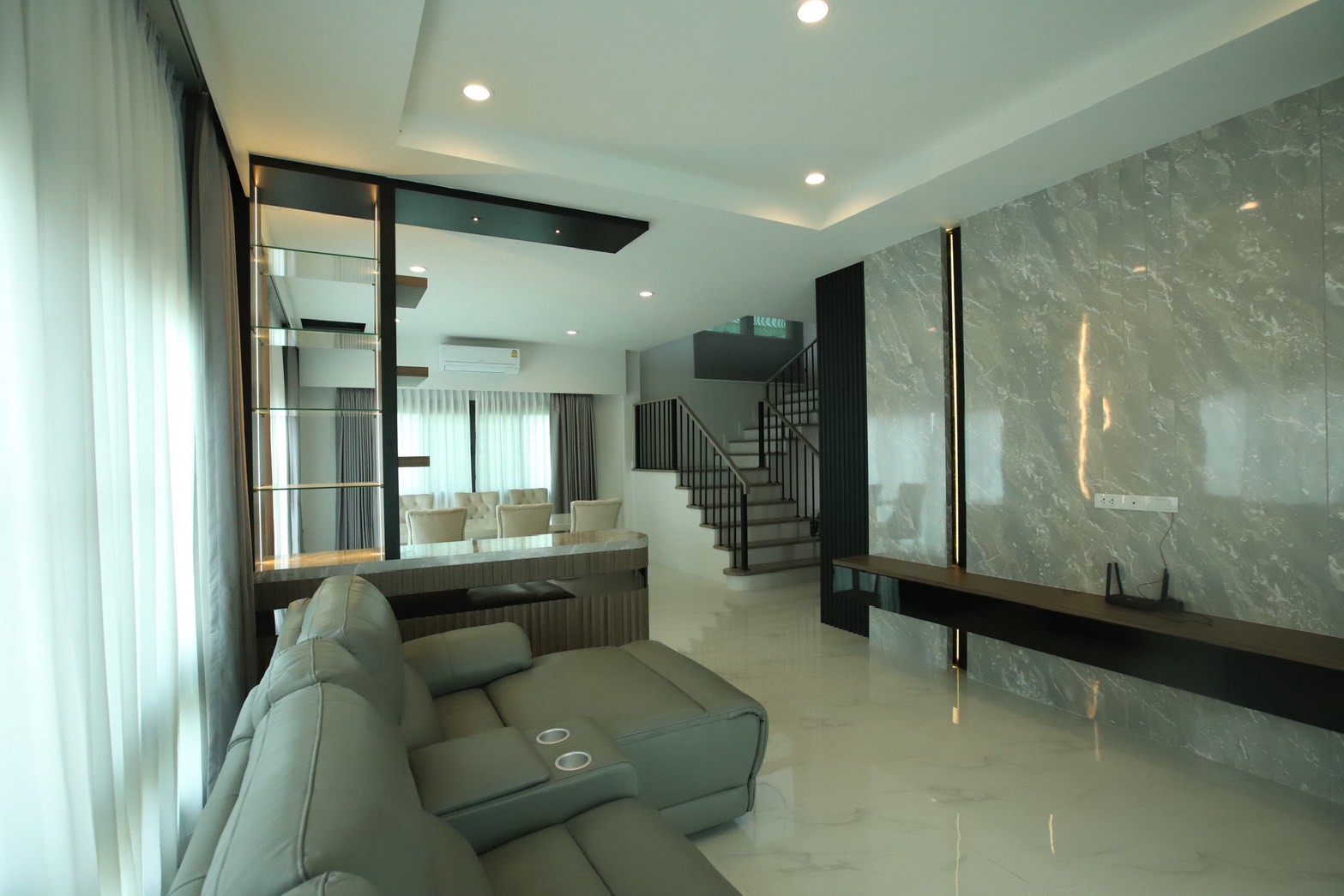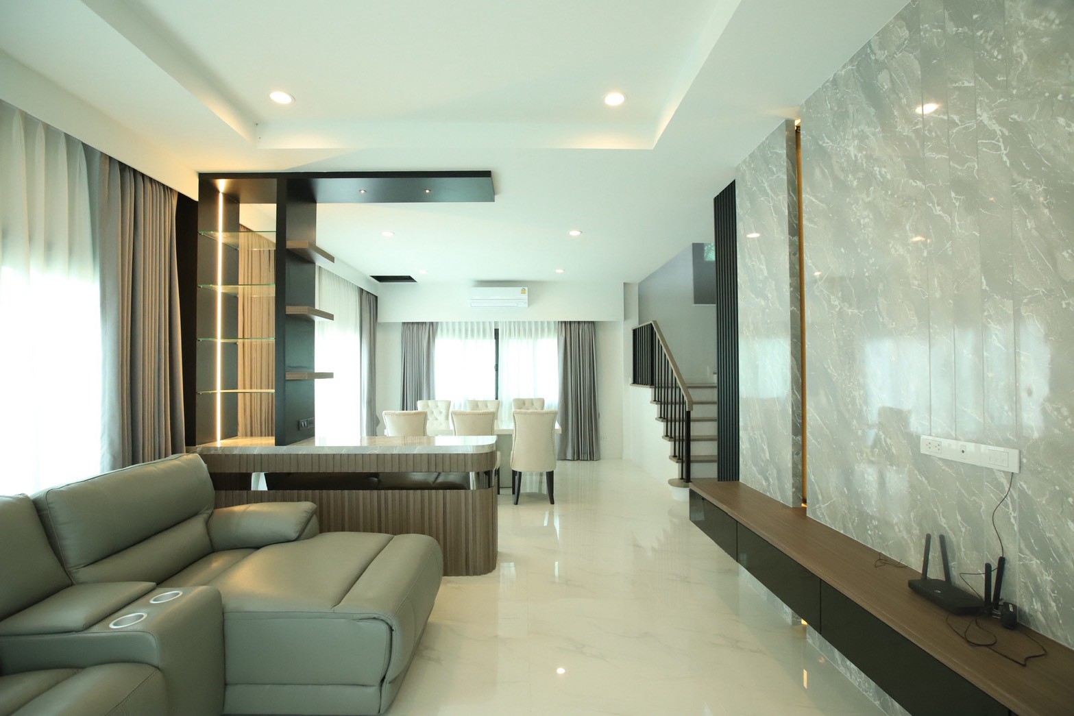 แนวคิดหลักของงานออกแบบคือการสร้างพื้นที่ที่ดูโปร่ง กว้าง และใช้งานได้จริง ภายใต้สไตล์ Contemporary Interior Design ที่ให้ความรู้สึกเรียบง่าย ทันสมัย และอบอุ่น เหมาะกับครอบครัวที่มีสมาชิกหลายช่วงวัย