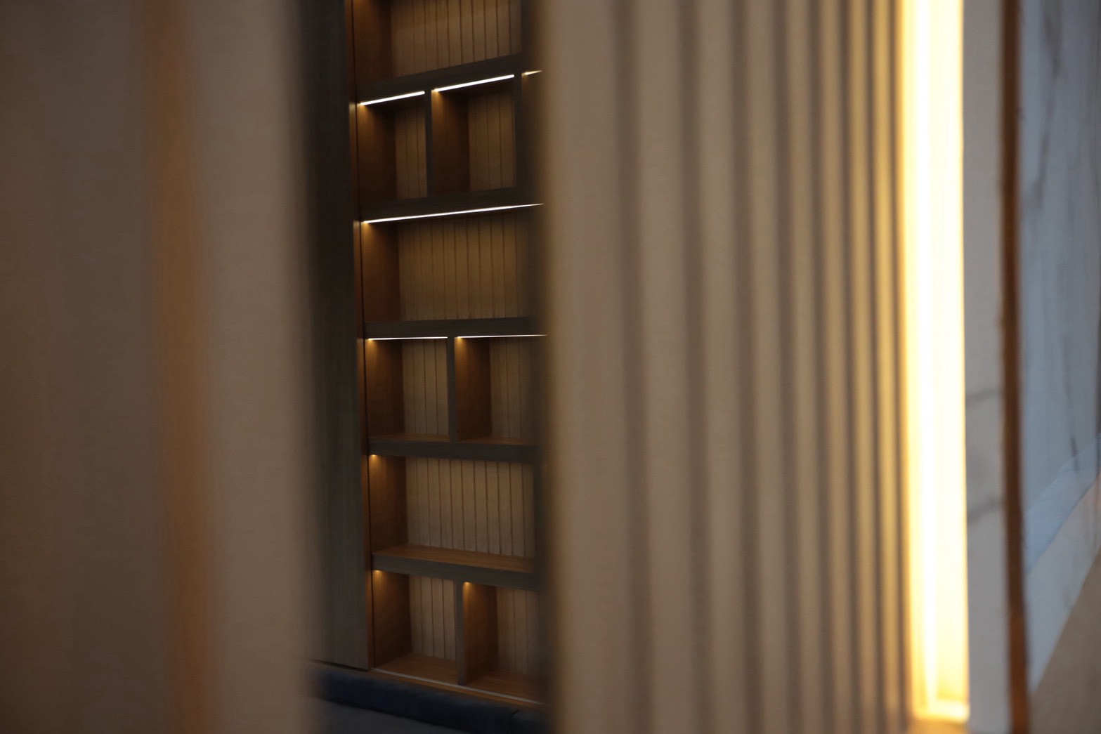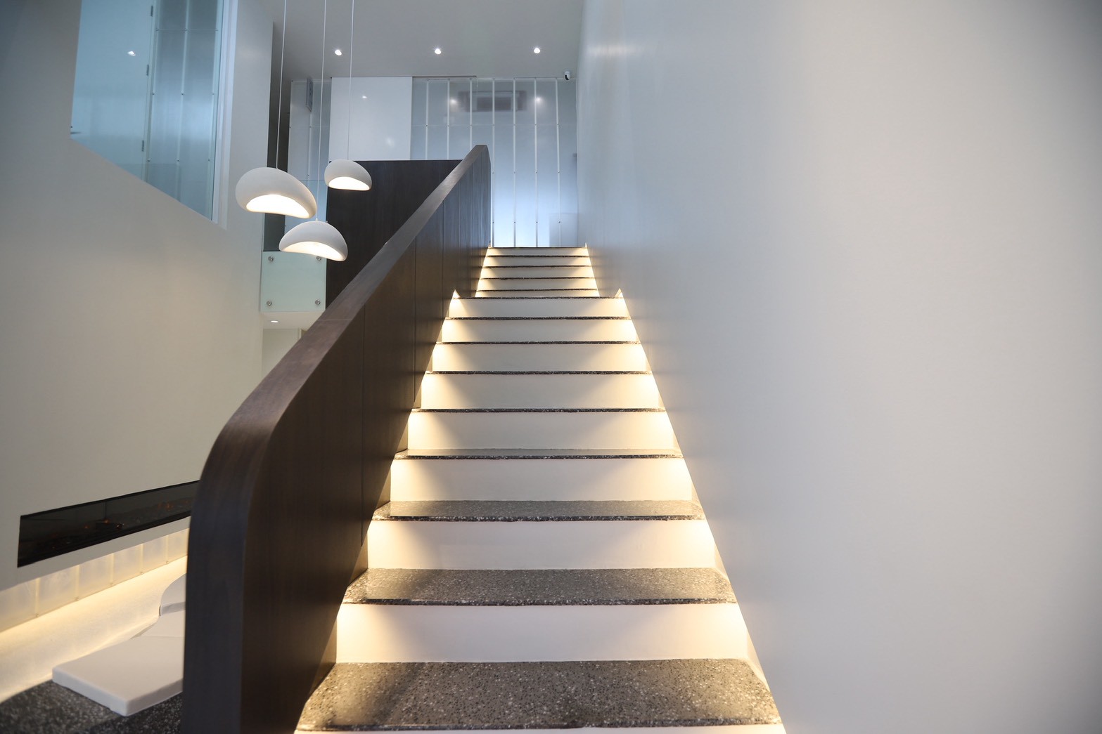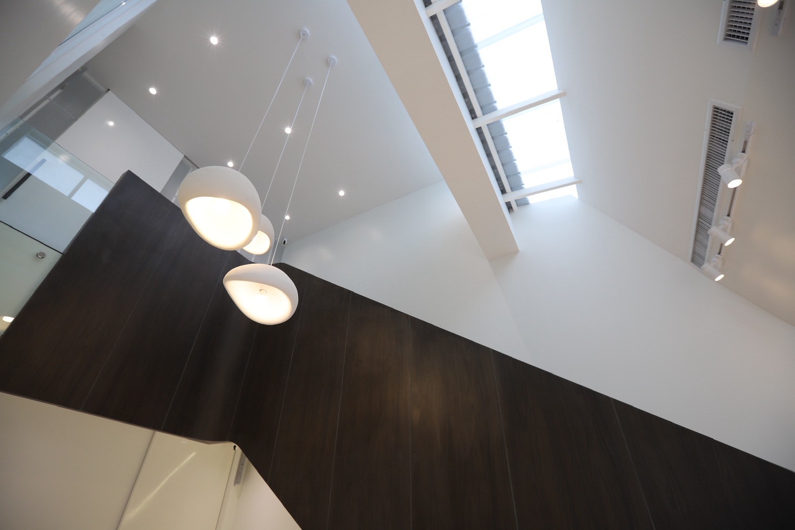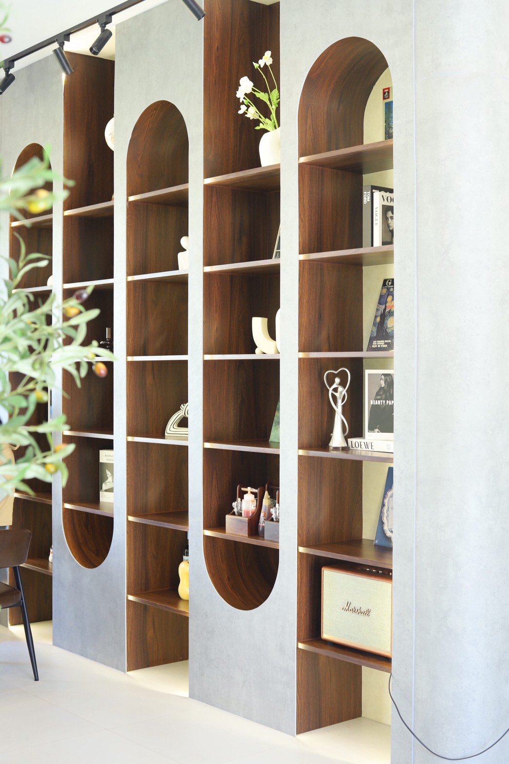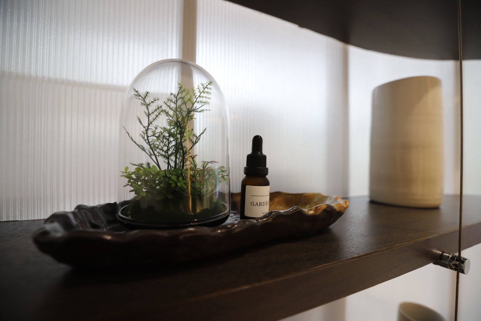 อีกองค์ประกอบเด่นคือผนังที่ใช้ แผ่น Polycarbonate โปร่งแสง ซึ่งถูกออกแบบให้ดัดโค้งเพื่อสร้างเส้นสายที่นุ่มนวลให้กับพื้นที่ ความท้าทายของงานนี้อยู่ที่การทำให้วัสดุสามารถขึ้นรูปโค้งได้อย่างเรียบร้อย แข็งแรง และสอดคล้องกับดีไซน์โดยรวม ทีมงานจึงต้องพัฒนาวิธีการติดตั้งและโครงสร้างรองรับอย่างพิถีพิถัน เพื่อให้ได้ผลลัพธ์ที่ทั้งสวยงามและใช้งานได้จริง