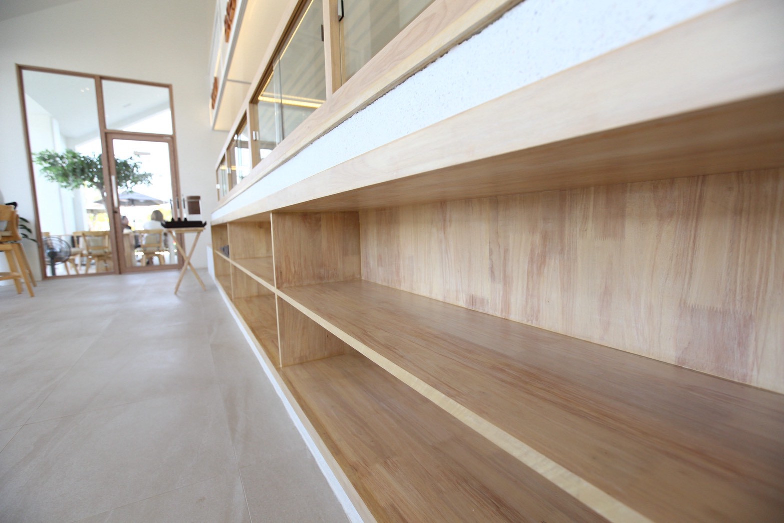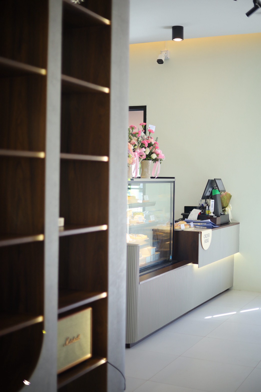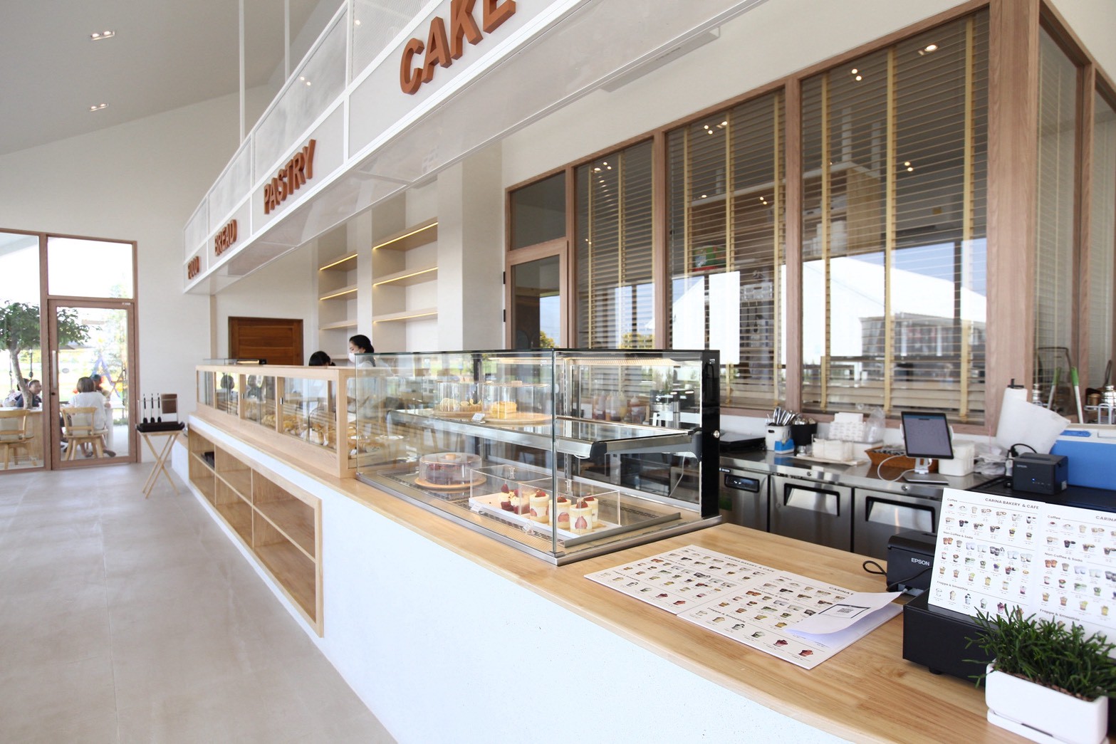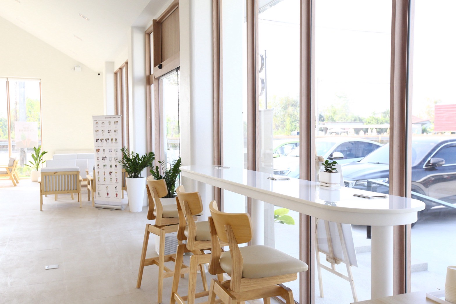 Carina Bakery & Cafe คือโปรเจกต์ออกแบบตกแต่งภายในคาเฟ่ในสไตล์ Minimal Interior Design ที่เน้นความเรียบง่าย อบอุ่น และเป็นธรรมชาติ โดยเลือกใช้ ไม้สนรัสเซีย เป็นวัสดุหลัก เพื่อสร้างบรรยากาศที่ผ่อนคลายและเป็นกันเอง ภายในร้านตัดกับพื้น Terrazzo สีขาว ที่ช่วยเพิ่มความสว่างและความสะอาดตาให้กับพื้นที่