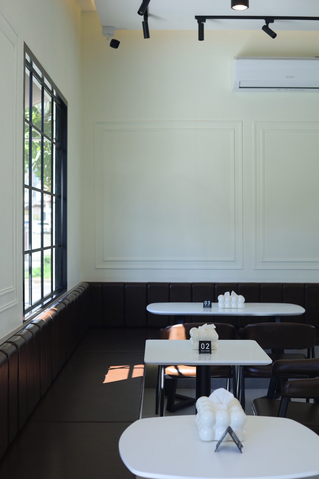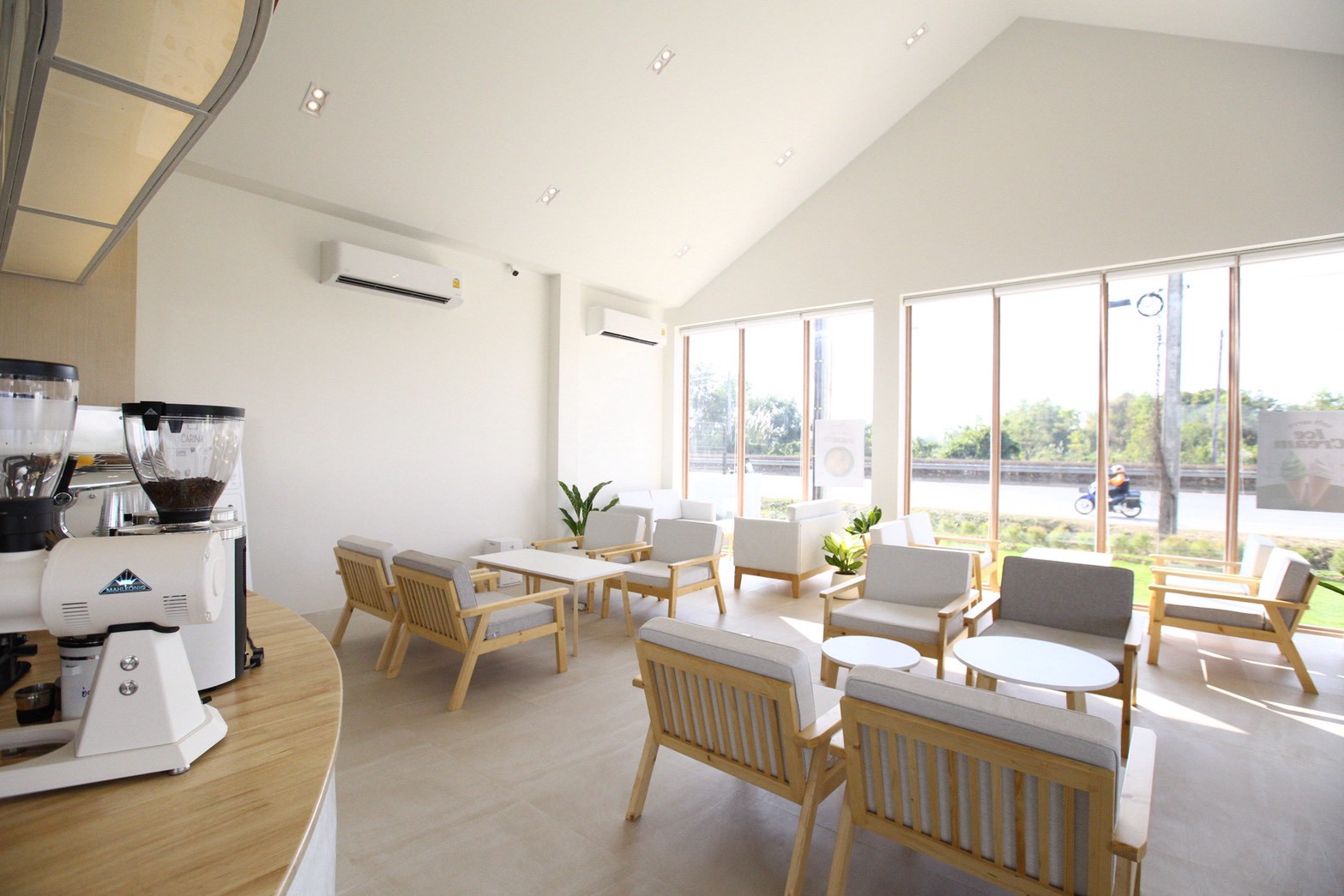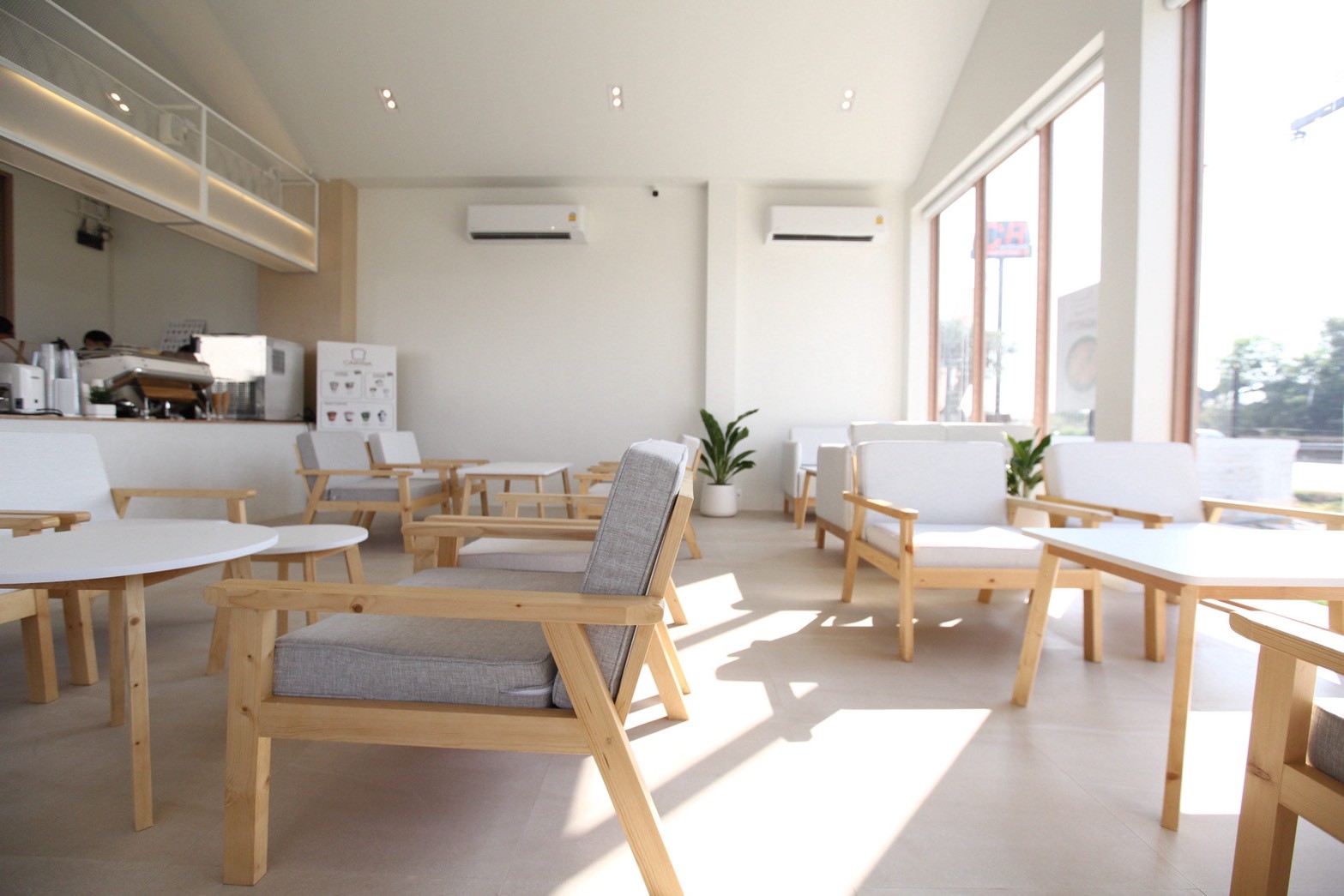 การออกแบบพื้นที่ภายในเน้นความโปร่งสบายและการใช้งานอย่างเป็นธรรมชาติ เปิดโอกาสให้แสงและพื้นผิวของวัสดุทำงานร่วมกันอย่างกลมกลืน ส่งผลให้คาเฟ่แห่งนี้มีบรรยากาศเรียบง่าย แต่ยังคงโดดเด่นด้วยรายละเอียดของงานตกแต่งภายใน