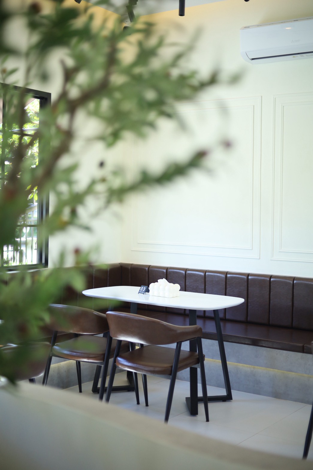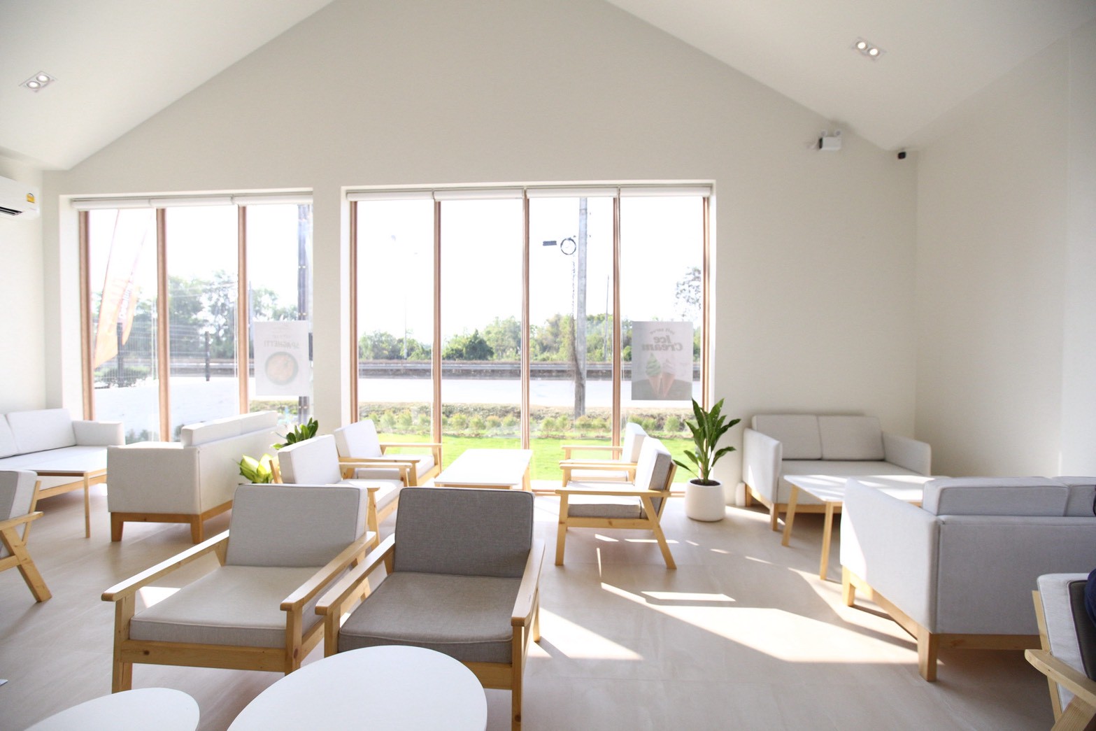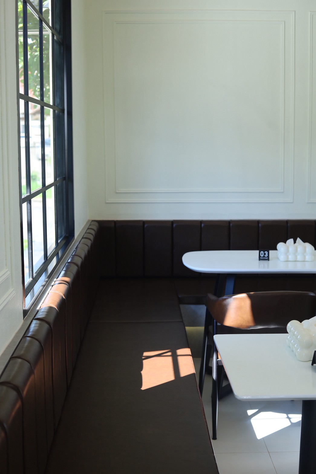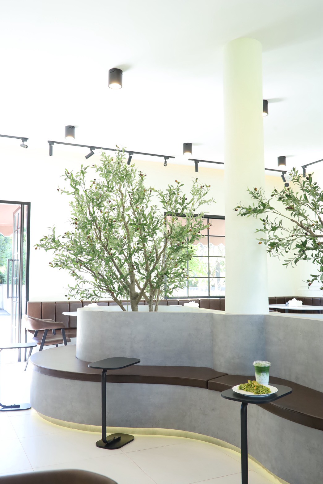 การออกแบบพื้นที่ภายในเน้นความโปร่งสบายและการใช้งานอย่างเป็นธรรมชาติ เปิดโอกาสให้แสงและพื้นผิวของวัสดุทำงานร่วมกันอย่างกลมกลืน ส่งผลให้คาเฟ่แห่งนี้มีบรรยากาศเรียบง่าย แต่ยังคงโดดเด่นด้วยรายละเอียดของงานตกแต่งภายใน