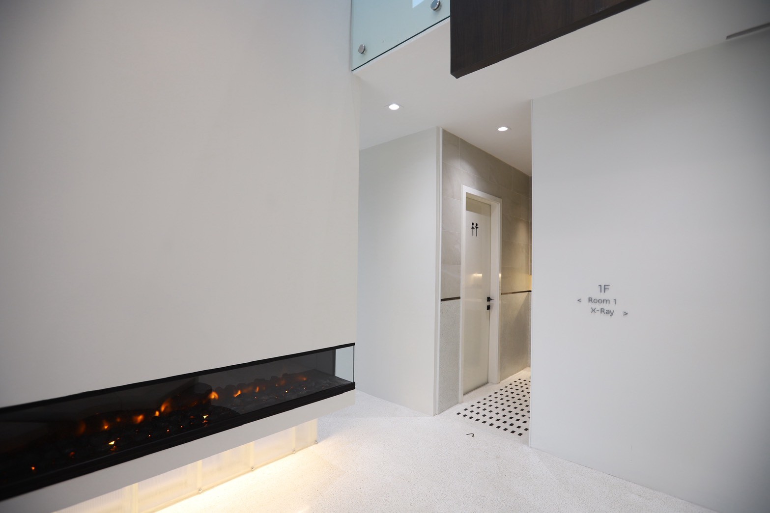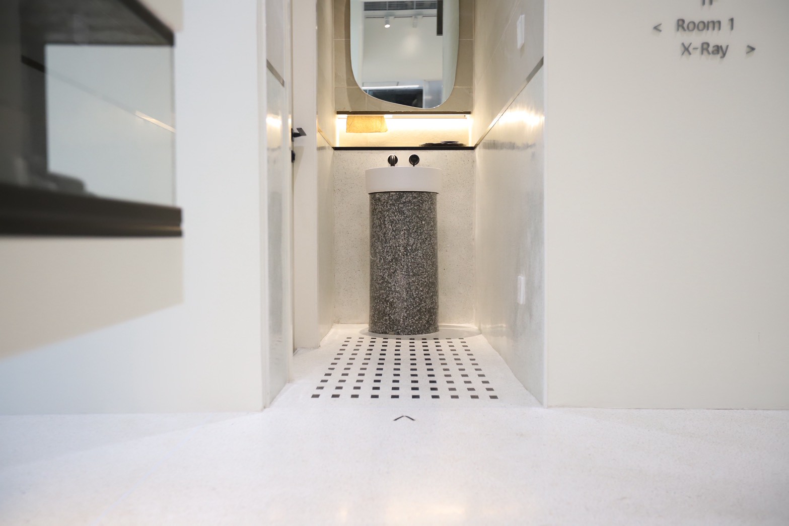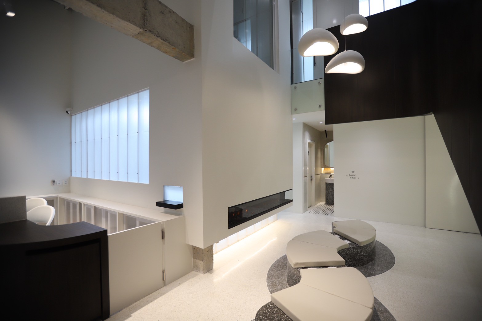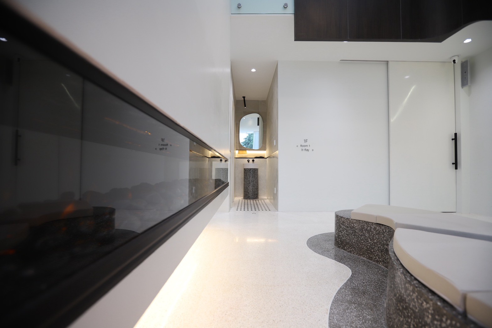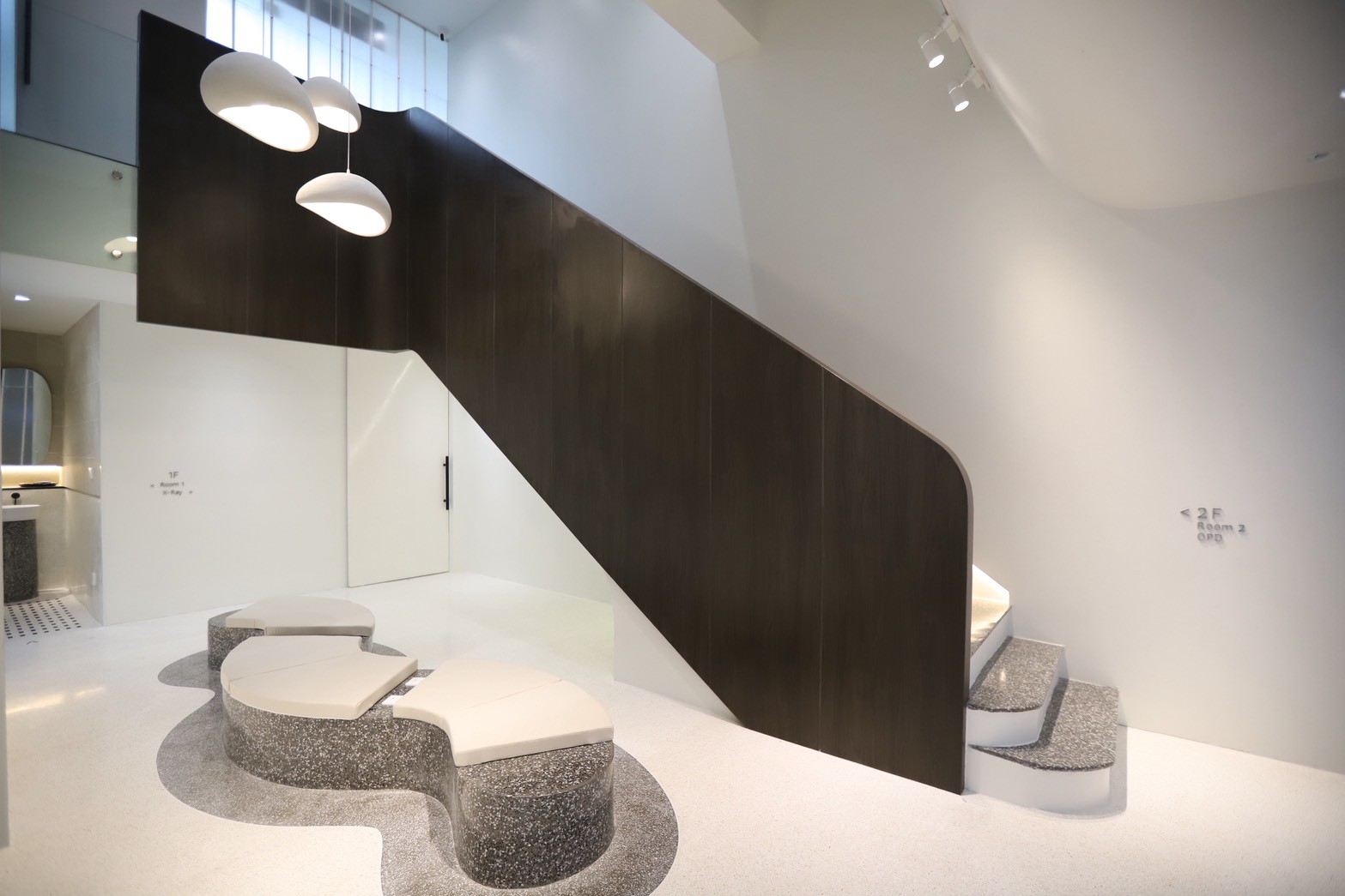 รายละเอียดของงานตกแต่งภายในยังถูกออกแบบให้ใช้ เส้นสายโค้ง เป็นองค์ประกอบหลัก ตั้งแต่ผนัง เฟอร์นิเจอร์ ไปจนถึงชิ้นส่วนขนาดเล็ก เพื่อสร้างเอกลักษณ์ให้กับคลินิก หนึ่งในรายละเอียดที่โดดเด่นคือ มือจับประตูจากหินจริง ซึ่งผลิตขึ้นตามแบบเฉพาะของโครงการ
